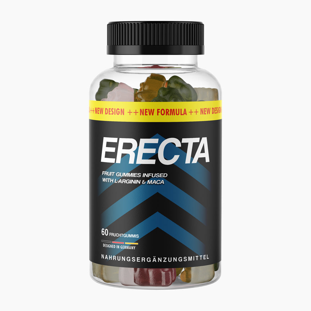 Die Erecta Fruchtgummis enthalten Inhaltsstoffe wie L-Arginin und Grüntee-Extrakt, die die Durchblutung unterstützen und somit die Erektionsfähigkeit fördern können.