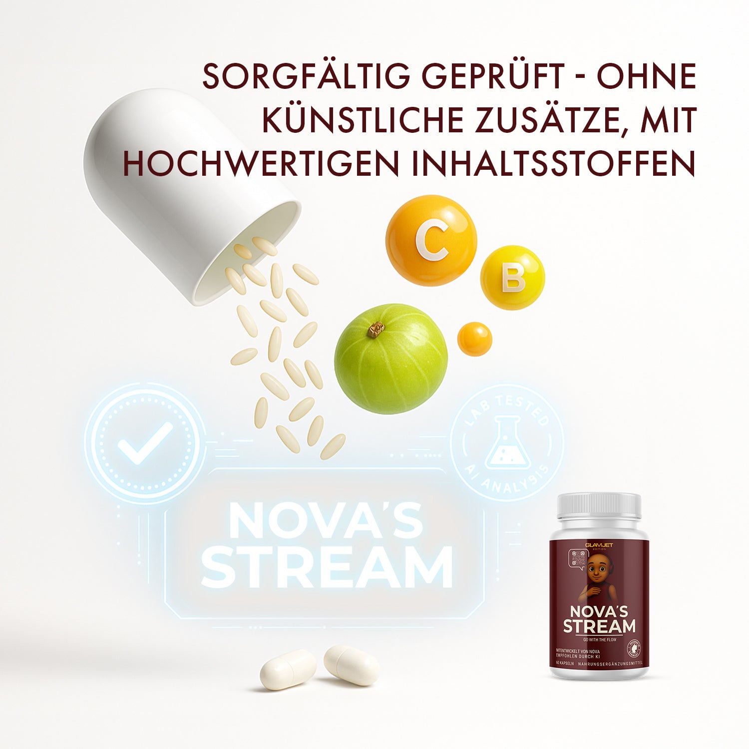 Nova’s Stream – dein täglicher Begleiter, wenn du dich auf das Wesentliche konzentrieren willst. Mit pflanzlicher Intelligenz. Inspiriert von der Natur. Optimiert durch KI.