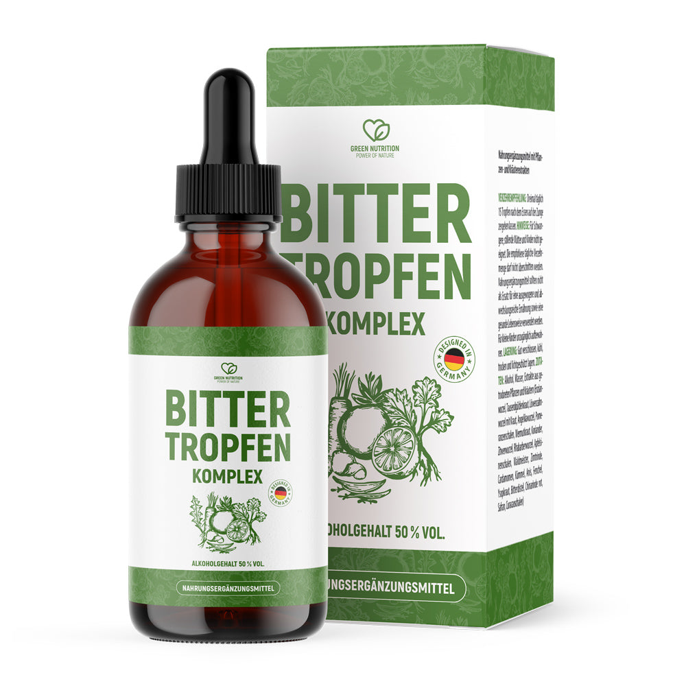 Die GREEN NUTRITION Bittertropfen enthalten Auszüge klassischer Pflanzen mit bitterem Geschmacksprofil und bieten eine praktische Möglichkeit, diesen traditionellen Bestandteil der Ernährung in moderner Form aufzunehmen.